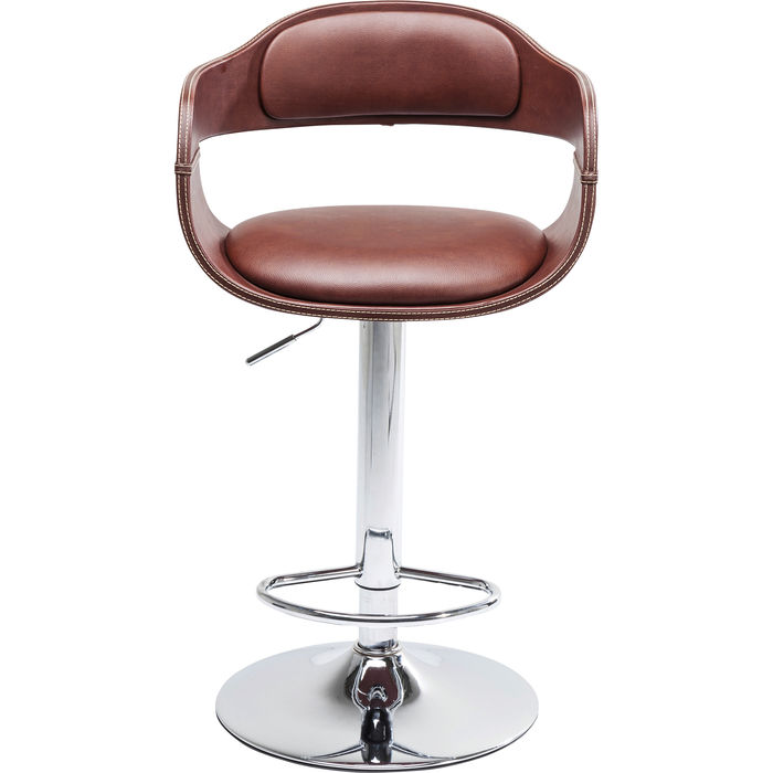 Ova elegantna barska stolica privlači poglede svojim retro šarmom i elegantnim dizajnom. Skladne boje, zakrivljeno sjedište i sjajna kromirana metalna baza čine ovu stolicu posebno atraktivnom. Lagano punjenje PU pjenom na sjedećem dijelu i naslonu te praktični oslonci za noge pružaju udobnost. Visina sjedenja može se individualno podesiti. Ova barska stolica idealna je za kuhinju i bar.