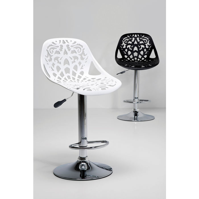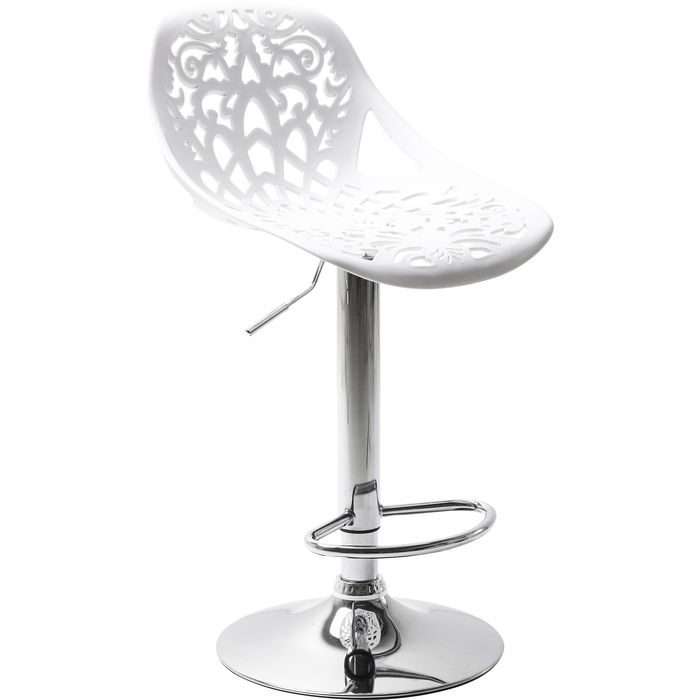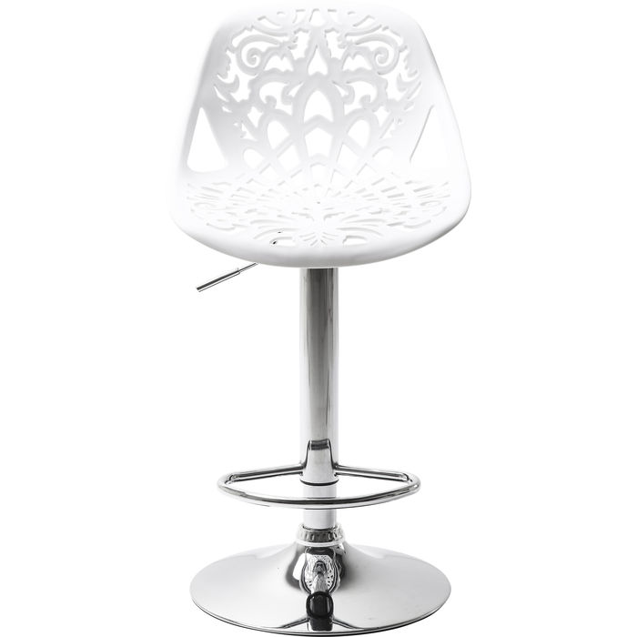 Barska stolica Ornament White - umjetnički predmet s karizmatičnim efektom. Sjedište izrađeno od polipropilena maštovitog uzorka prekrasno je spojeno s robusnim, čeličnim postoljem.