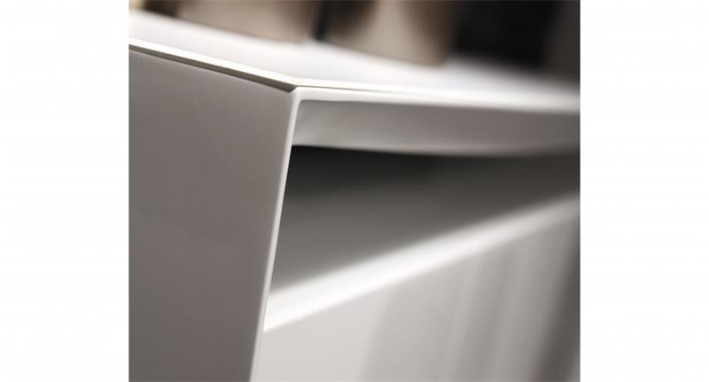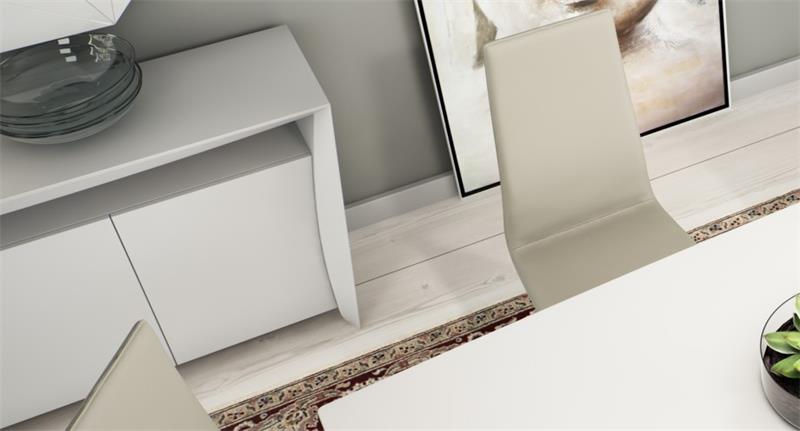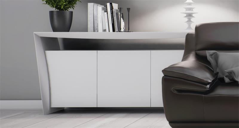 - Buffet/komoda modernog dizajna u medijapanu bijele mat boje s bijelom staklenom gornjom pločom
