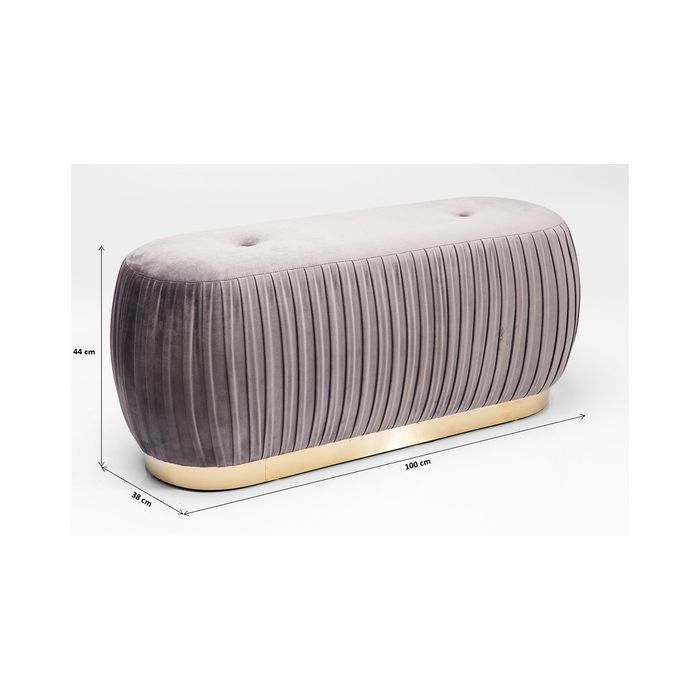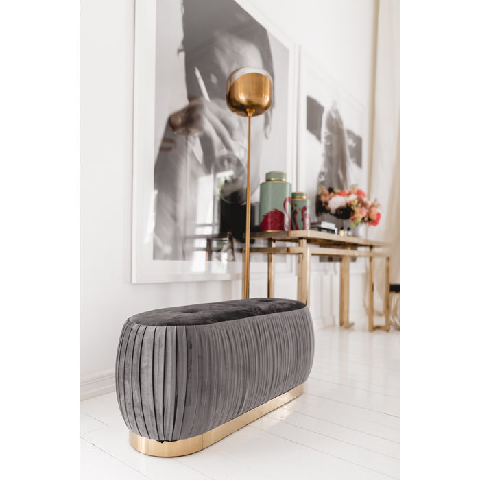 Raskošno nabrana presvlaka sa šavovima na sjedalu naglašava glamur ove klupe. Idealna za postavljanje u spavaću sobu, na primjer na kraj kreveta ili ispred visokih prozora.