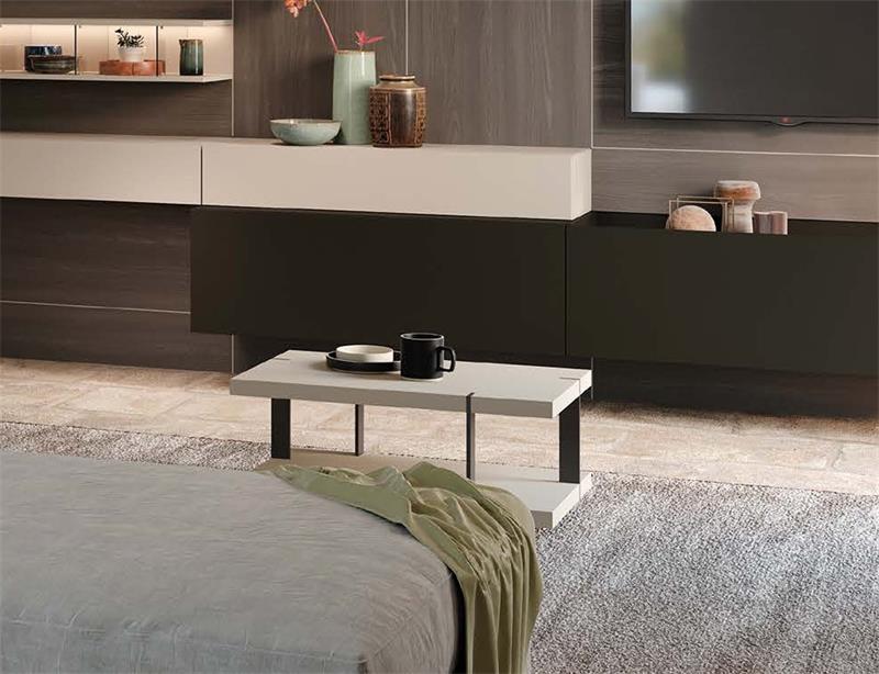 Serija malih stolova s ??mat lakiranom metalnom konstrukcijom ili manganom u bojama, drvena ploča, završne obrade: arktički hrast, čvorasti hrast, zemljani brijest, duhanski hrast, termički obrađeni hrast, jesenski brijest, sivi hrast, mat lak, sjajna i boja otvorenih pora kolekcije, efekt glatkog betona, efekt glinenog materijala. Dostupno u veličinama: kvadrat Š 60/80 V 40 D 60/80, pravokutni Š 120 V 40 D 60 cm.
