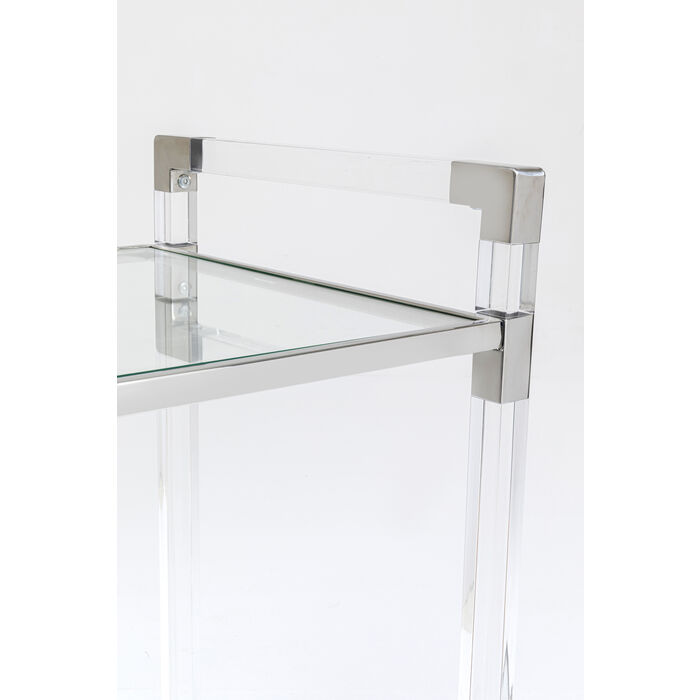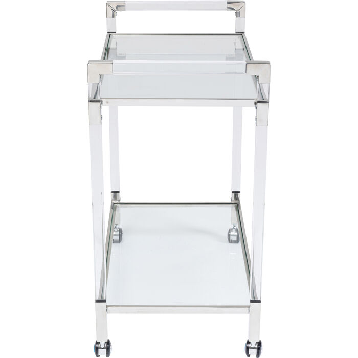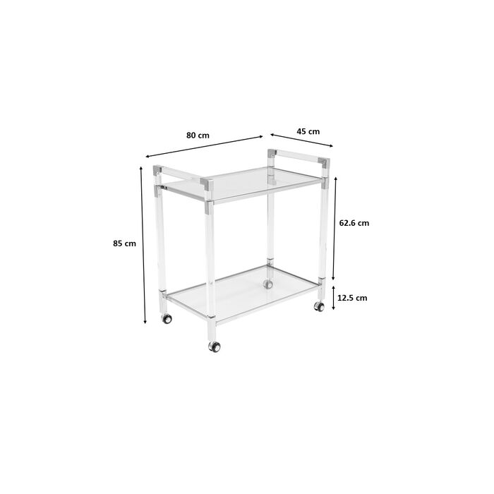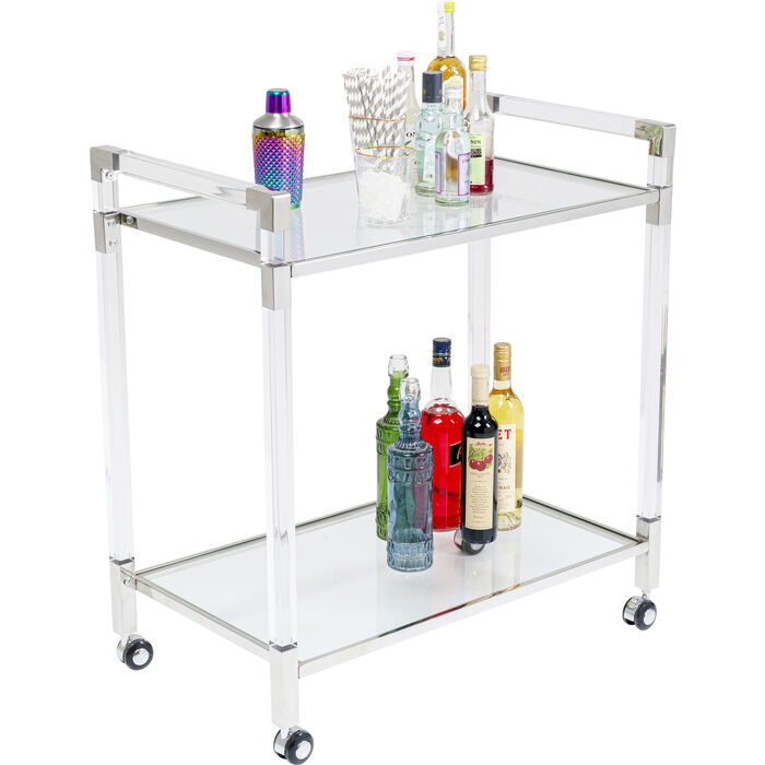 Tražite jos glamura? Bar trolley Josy Silver je prava stvar za vas. Bilo za sljedeću zabavu ili ugodnu večer: kolica za posluživanje pomažu vam da svoje piće predstavite u najboljem stilu. Nedostaje vam pravi pribor za to? U našem asortimanu imamo pravu čašu za svako piće. Na kolica stane do čak 30 kilograma što znači da će bez problema izdržati svako piće koje želite poslužiti.Pravi moblini minibar!