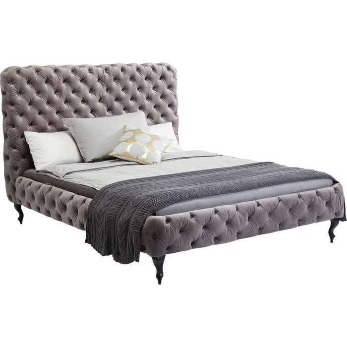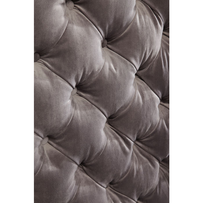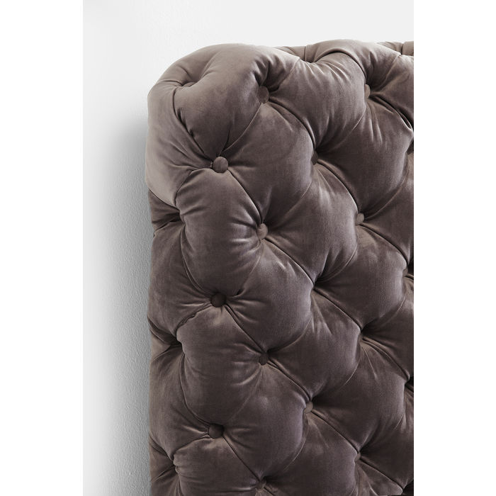 Krevet kraljevskog izgleda u stilu Chesterfield s modernim dodirom zahvaljujući svom trendovskom sivom baršunu. Unatoč klasičnom obliku, ovaj krevet sa svojim ugodnim uzglavljem izgleda izuzetno moderno. Baršunaste presvlake u trendovskoj sivoj boji daju mu ležerni, sofisticirani dizajn.