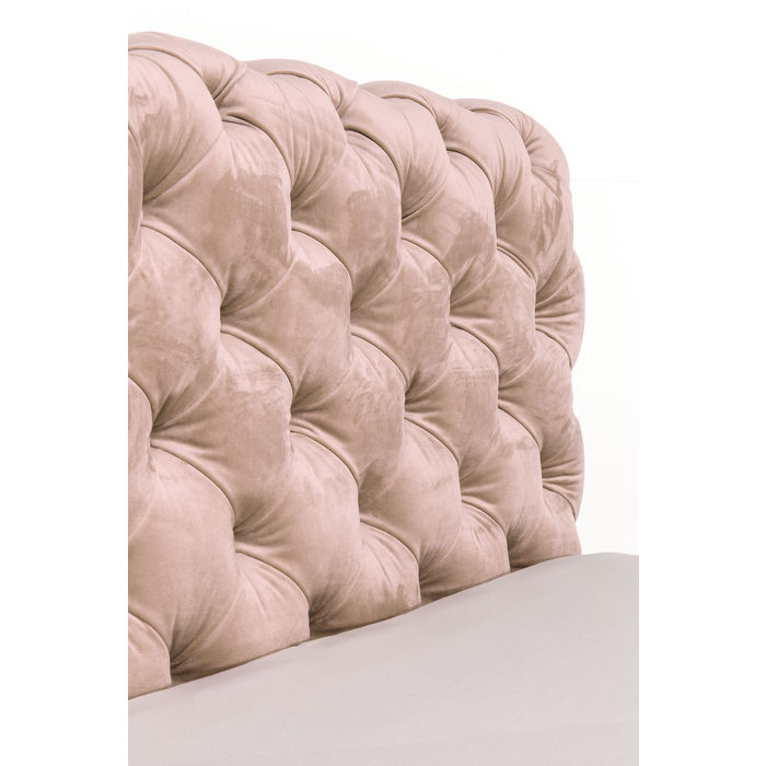 Krevet kraljevskog izgleda u stilu Chesterfield s modernim dodirom zahvaljujući svom trendovskom bež baršunu. Unatoč klasičnom obliku, ovaj krevet sa svojim ugodnim uzglavljem izgleda izuzetno moderno. Baršunaste presvlake u trendovskoj bež boji daju mu ležerni, sofisticirani dizajn.