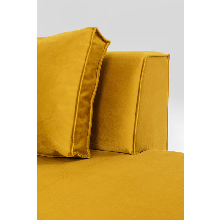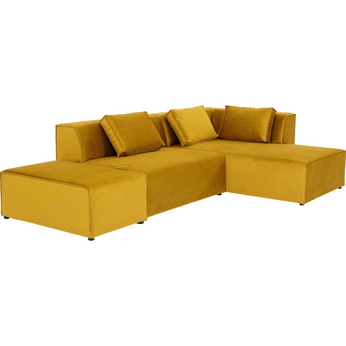 Klasična kutna garnitura iz naše modularne serije Infinity u ravnom dizajnu s žarkom bojom ambera odnosno jantra. Osnovni komad namještaja koji se može skladno kombinirati s bilo kojim stilom opremanja. Bočni dio može se koristiti kao stolica, oslonac za noge ili bočni stol. U našoj ponudi imamo desni i lijevi kut bočnog dijela garniture.