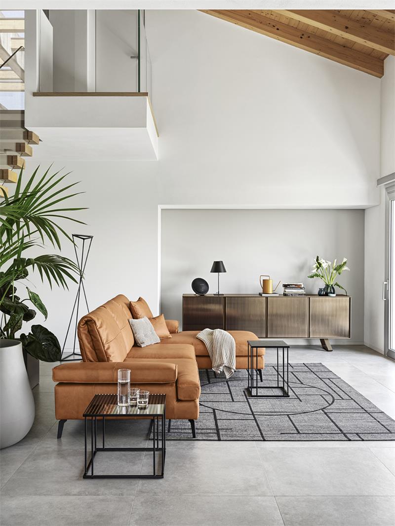 Minimalna estetika s čistim i bitnim linijama i s mekim oblicima. Kutna garnitura Landa se odlikuje svojom elegancijom. Garnitura Landa nudi veliku slobodu kompozicije: dostupna s fiksnim ili modularnim elementima kako bi udovoljila svim potrebama prostora i interpretacije. Garnitura je dostupna u raznim bojama.