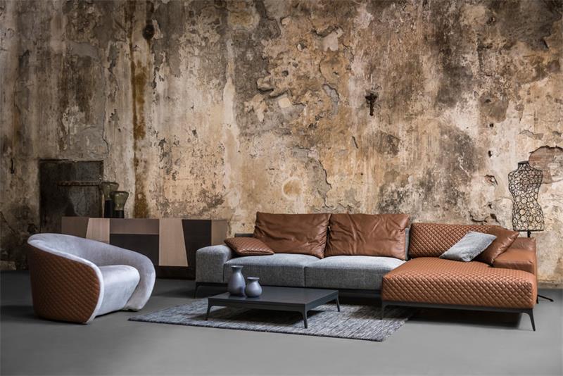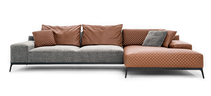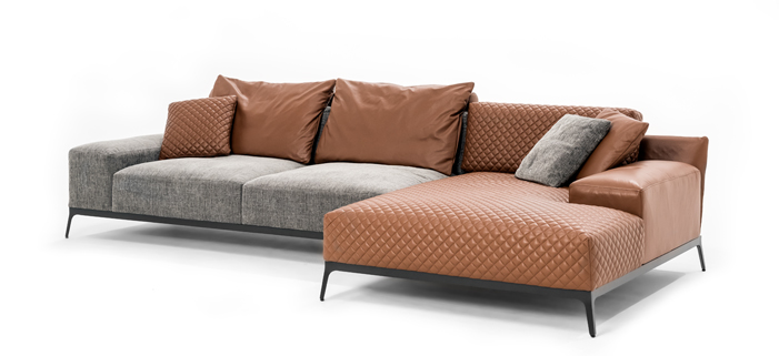 - Garnitura je podržana metalnim nogicama. Dostupna je u više boja tkanina i kože koje možete pogledati ovdje