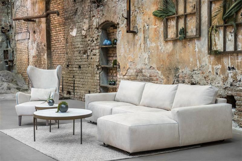 Modularni elementi i posvećenost detaljima stvoreni su za ljubitelje suvremenog dizajna. Ovaj model plijeni jednostavnošću i detaljima, poput ukrasnih šavova i neobičnih metalnih nožica. Punjenje od kombinacije HR pjene i perja pruža vam udobnost koju zaslužujete nakon napornog radnog dana.