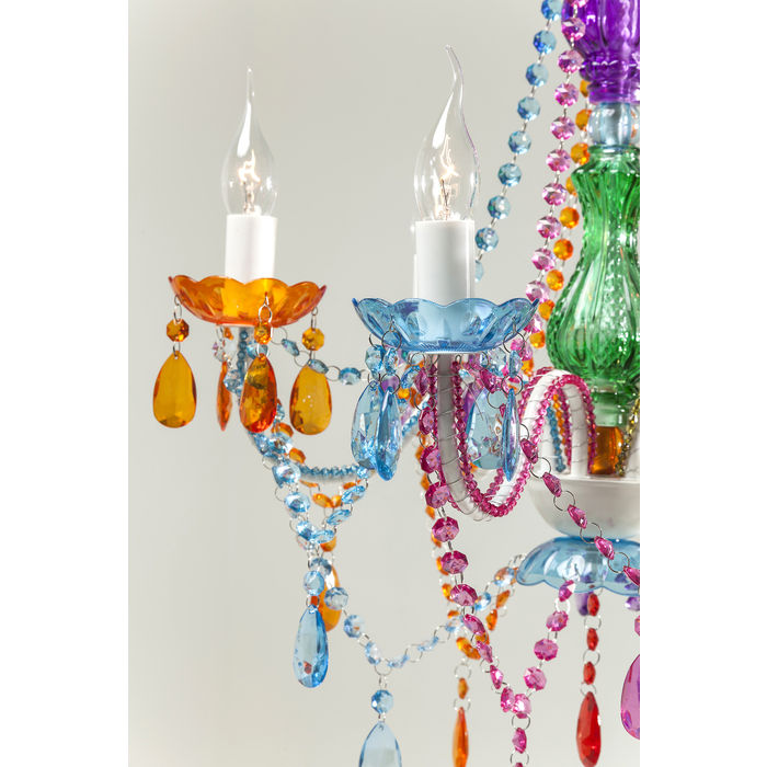 Trendi luster u svim duginim bojama - barokna simfonija u obliku moderne viseće svjetiljke s puno raskošnih detalja. Svjetiljka u stilu lustera s individualnim bojama. Mnogo akrilnih dijamanata elegantno se klati i blista stvarajući čarobne efekte boje i svjetlosti kad se lampica uključi. Ali čak i kada nije uključena, Starlight Rainbow viseća svjetiljka spektakularna je i upada u oči. Priključak žarulje E14, nije uključen u cijenu.