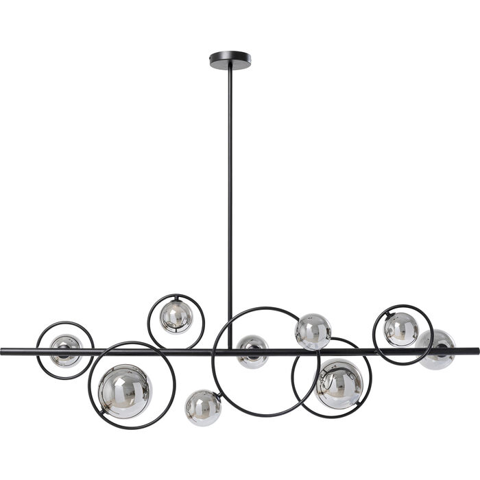 Universe je dizajnerska lampa koja se poigrava okruglim oblicima, a istovremeno stvara moderan izgled u svakoj prostoriji. Crna i srebrna boje su koje se lako uklapaju u bilo koji stil uređenja. Ova stropna lampa ne samo da se dobro slaže sa drvenim stolovima, već i modernim blagovaonskim stolovima od stakla. Kada kupujete stropnu lampu, morate razmisliti o tome kako one izgledaju kada su svijetla ugašena, jer se tada one pretvaraju u ukrasne predmete. Ova lampa savršen je ukrasni predmet.