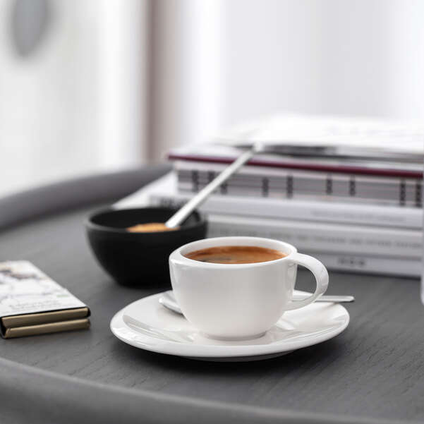 Izražajno, funkcionalno, moderno – uživajte u jedinstvenom dizajnu s NewMoonom, bilo da je za svakodnevnu upotrebu ili posebne prigode. Upečatljiv rub u obliku uskog polumjeseca i rezultirajuća blaga asimetrija odražavaju jasan karakter kolekcije. Ova šalica vaš je stilski pratitelj za espresso nakon jela ili jednostavno kad god poželite. Doživite porculan inspiriran ljepotom mjeseca.