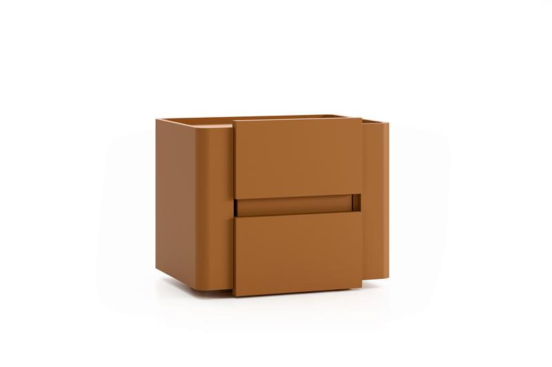 Kompaktni noćni ormarić definiran čistim linijama i omekšanim rubovima. Njegova minimalistička silueta istaknuta je diskretnim ručkama i pažljivo odabranim završnim obradama koje ističu prirodnu ljepotu drva i laka.