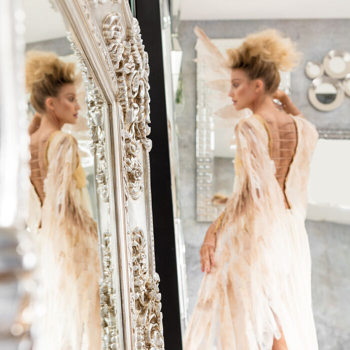 Ovo ogledalo sjajan je primjer luksuzne elegancije. Gdje god da visi ili stoji, uvijek je na pravome mjestu i u dom unosi jedan predivan detalj. Obrubrni ukrasi podsjećaju nas na one stare, baroknoga izgleda te tako unose ambijent dvorca u vaš dom. Ogledalo koje je savršen kontrast modernom namještaju.