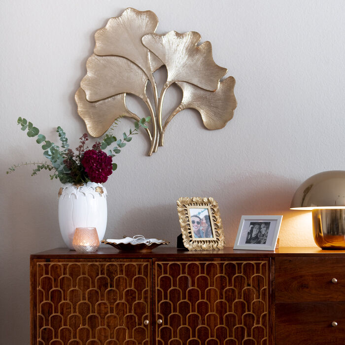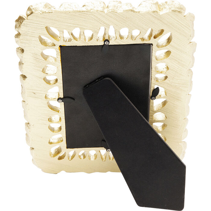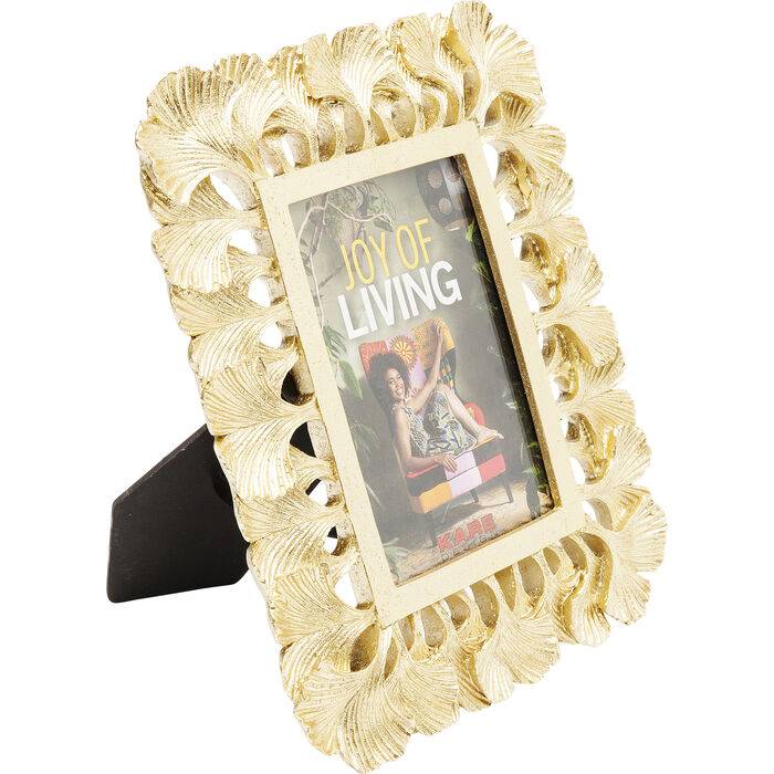 Pravokutni oblik za slike u zlatnoj boji koji dodaje dašak glamura vašoj omiljenoj fotografiji. Izvorni obrub stiliziranih listova ginka vizualno je predivan. Lijepa je i ideja za poklon jer predstavlja prijateljstvo, ljubav i dug život. Elegantan je te je svaki okvir unikatan i ručno izrađen.