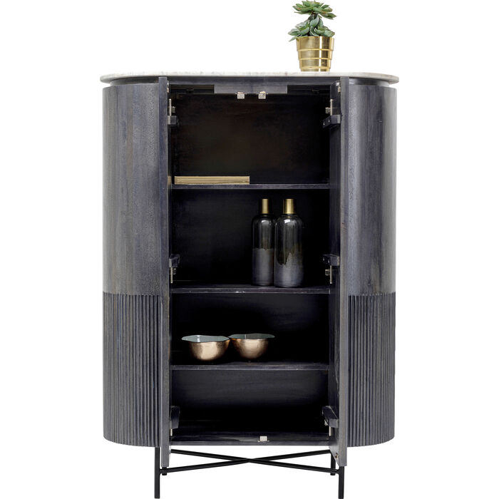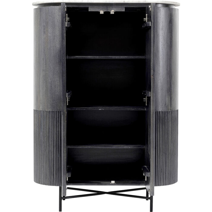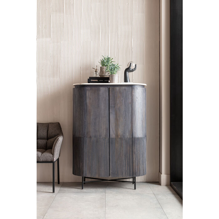 Glenn ormar igra se kontrastom crno-bijelog dizajna. S kombinacijom svijetlog mramora i tamnosive strukture od punog drva na crnom čeličnom okviru, ovaj komad je prava demonstracija grafičkog dizajna namještaja.