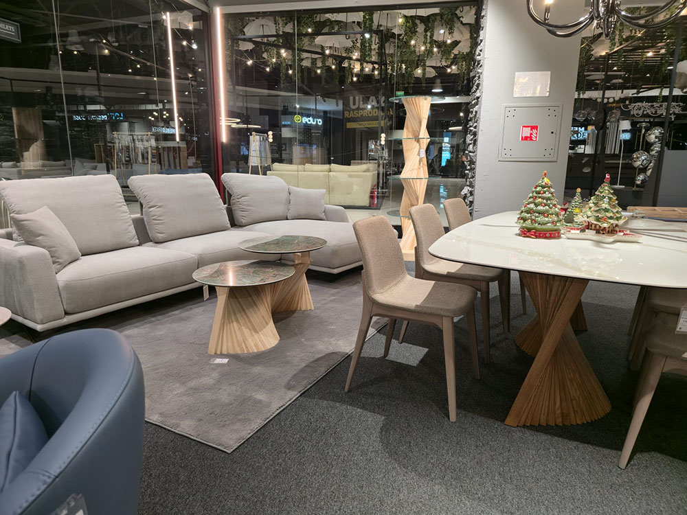 Ambijenti koji inspiriraju U našem novom salonu možete istražiti pažljivo dizajnirane ambijente — od dnevnih boravaka i blagovaonica, preko spavaćih soba, do kuhinja i rješenja za male prostore. Svaki kutak osmišljen je tako da vam pokaže kako se kvalitetan dizajn uklapa u stvarni život. Premium brendovi na jednom mjestu.