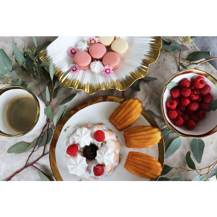 Ova fina serija posuđa kombinira tipični oblik keramičkih komada s modernim glamurom. Kombinacija krem i zlatne boje koja se dobro kombinira sa svim stilovima opremanja. Šareni buketi cvijeća odlično se slažu s ovim šalicama. Nakon zabave porculansko posuđe jednostavno se pere u perilici posuđa.