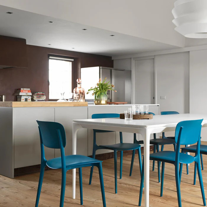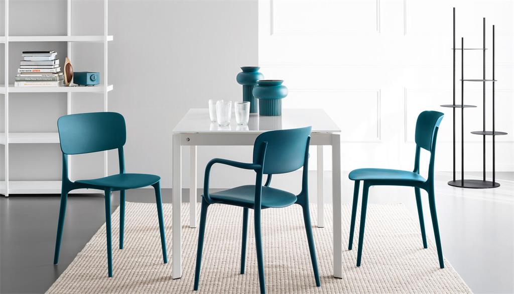 Stolica LIBERTY koju je Archirivolto dizajnirao za vanjsku i unutarnju upotrebu, interpretira meke i balansirane linije poznatih Thonet stolica u modernom obratu. Izrađena je od polipropilena što ju čini laganom i funkcionalnom, a njena ljepota leži upravo u jednostavnosti. Petrolej plava boja inspirirana 70-ima koja je transformira u ikonu dizajna, ali istovremeno i pristupačan i fleksibilan komad namještaja. Visina sjedenja je 46 cm. Stolice se mogu slagati jedna na drugu do 4 komada i otporne su na nepogodne vremenske uvjete.