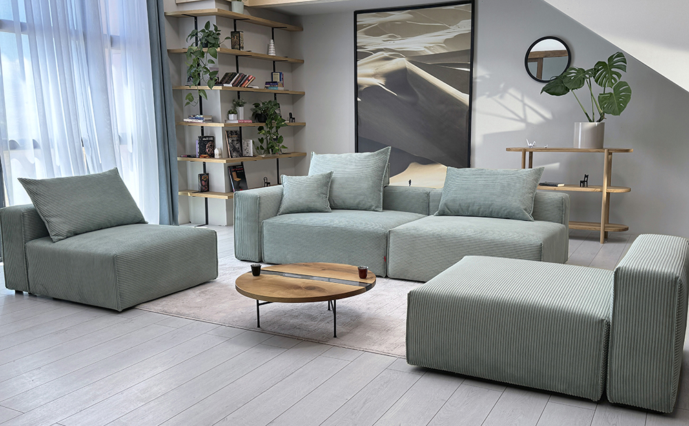 Garnitura Bard, dizajnirana je da ponudi neponovljivi komfor i užitak. Izrađena sa širim sjedištima, minimalističkom ali luksuznom estetikom, ovaj model sadrži samo četiri elementa i četiri jastuka, te omogućava mnogo različitih transformacija i kombinacija.