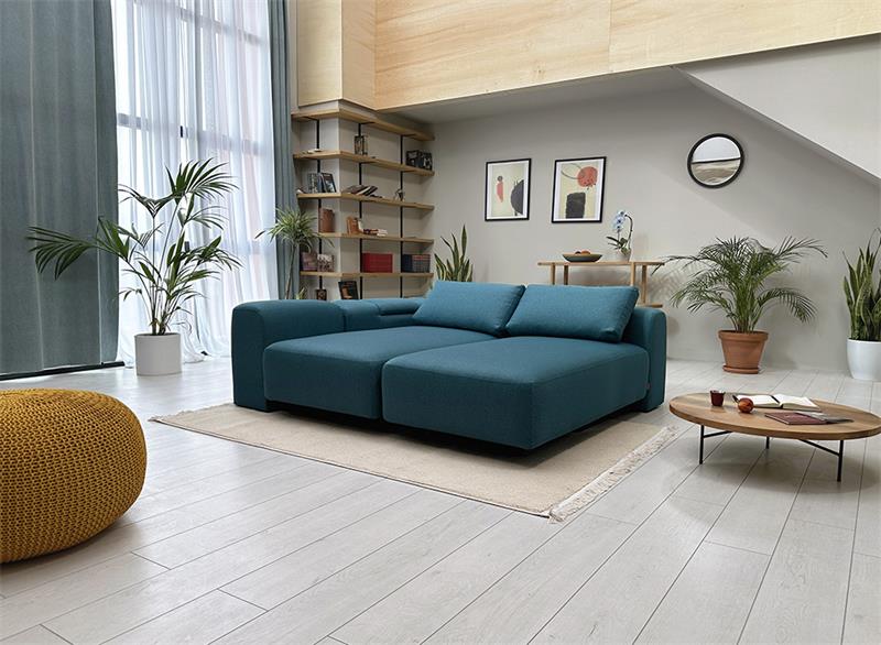 - Svi elementi imaju elegantan izgled, dizajnirani s mekim, zakrivljenim rubovima za ugodniji dojam i iskustvo. Unutarnja struktura sastoji se od drvene konstrukcije, cik-cak opruga i hibridne pjene, koja osigurava mekoću i udobnost prilikom sjedenja ili ležanja.
