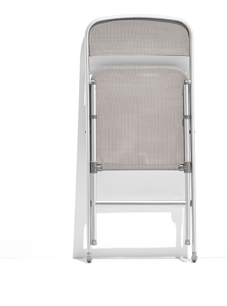 Stolica Alu je sklopiva aluminijska stolica koja ima aluminijski okvir, a sjedalo i naslon su tapecirani prozračnom i perivom PVC mrežom. Korištenje vrhunskih materijala omogućilo je postizanje trajne, lagane stolice s kojom se lako rukuje. Lako se sklapa i posprema.
