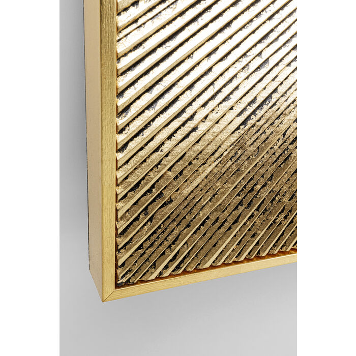 Velika, veličanstvena slika u antično zlatnoj boji sa okvirom od savršenog punog drva. Zlatna boja ima jedan tajanstveni sjaj koji nijedna druga boja nema. U potpunosti izrađena ljudskom rukom.