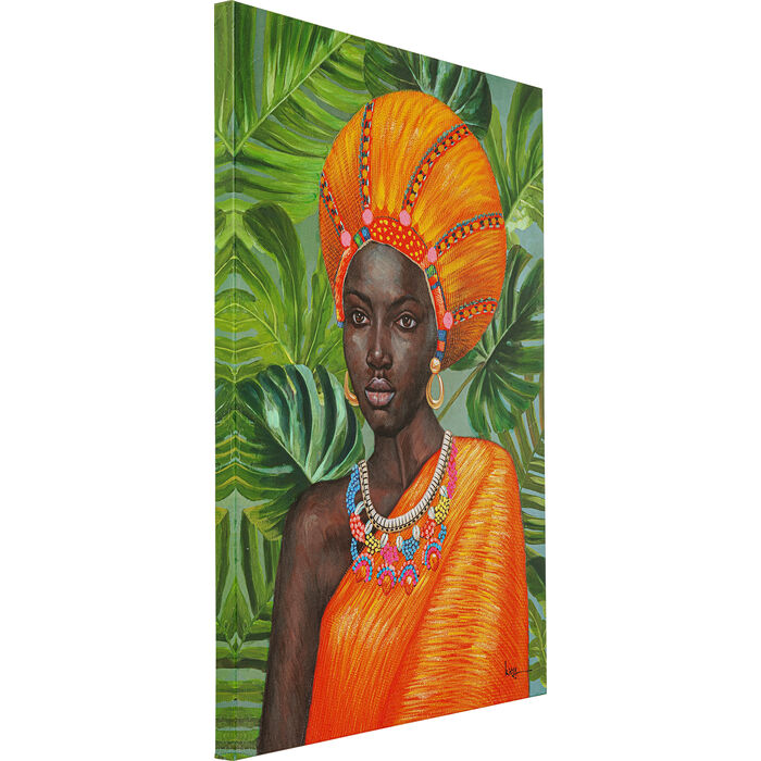 Bujna zelena boja džungle u pozadini i intenzivna narančasto-crvena boja zemlje u odjeći savršen ju kontrast za ovu sliku koja nam predstavlja afrički kontinent. Dekorativni porter ove žene u naturalističkom stilu savršena je za svaki zid. Dodajte dašak Afrike svome domu uz sliku African Beauty.