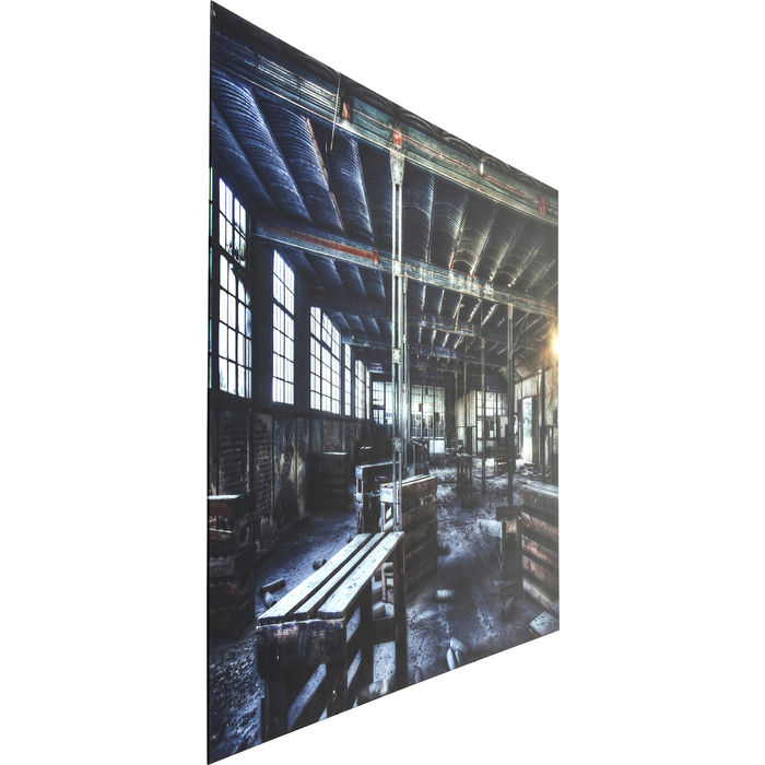 Ova slika iza sigurnosnog stakla od 4 mm sa svojim motivom nadahnutim industrijskim šikom pretvara Vaš dom u galeriju. Težina: 15 kg