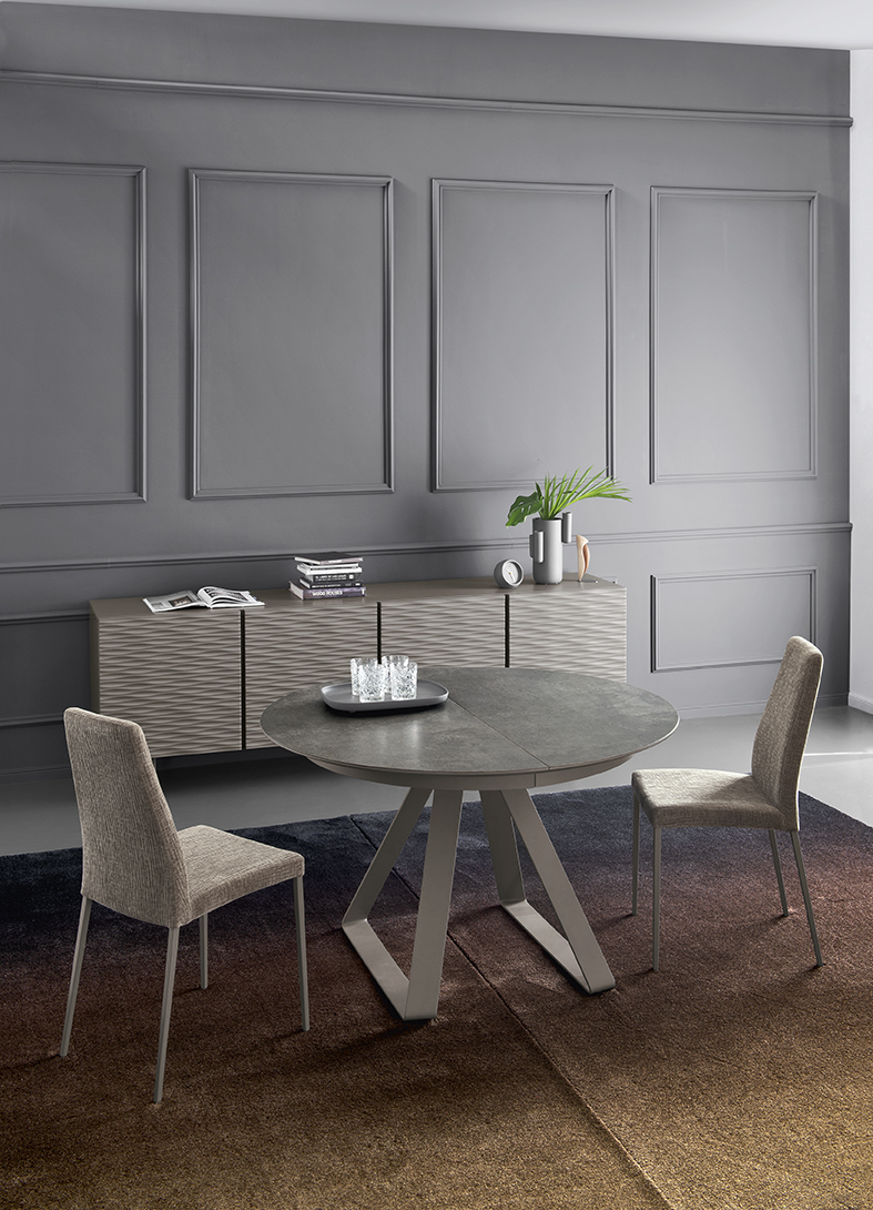 Stol s vitkim, geometrijskim linijama koji će stilski ukrasiti svako okruženje. ATLANTE je okrugli stol na razvlačenje pa se lako mogu dodati 2 dodatna mjesta u slučaju iznenadnih gostiju ili ako samo želite više mjesta oko stola. Ima metalnu podlogu dok su gornja ploča i produžni dio izrađeni od mat keramike debiljne 3 mm. Idealna kombinacija elegancije i funkcionalnosti.