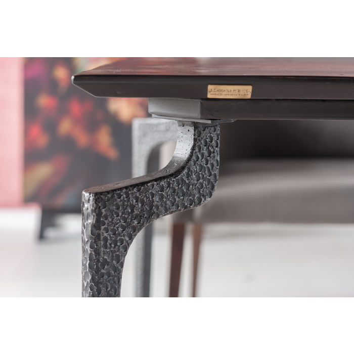 Blagavaonski stol izrađen od recikliranog, obojenog masivnog drva s lakiranim, ručno izrađenim čeličnim nogama za 4 - 6 osoba. - Genijalno dizajnirane i čekićem oblikovane čelične noge, nakošeni rubovi stola i živahna struktura reciklirane ploče daju ovom stolu jedinstven izgled.