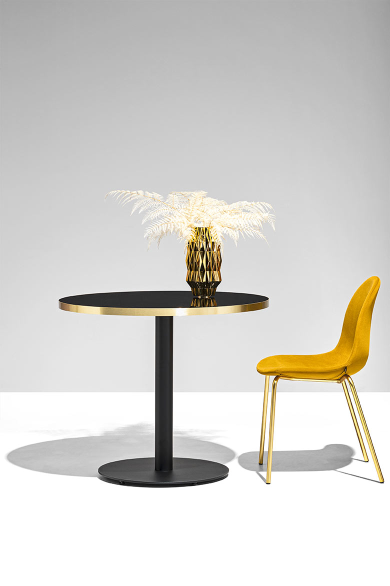 Stol Cocktail s metalnim postoljem. Ploča stola izrađena je od melamina, a može se naručiti i u drugim varijantama. Stol je prigodan za unutarnju i vanjsku upotrebu, dok kromirana verzija stola nije prikladna za vanjsku upotrebu. Dostupan je u raznim bojama.