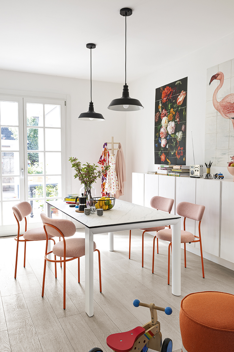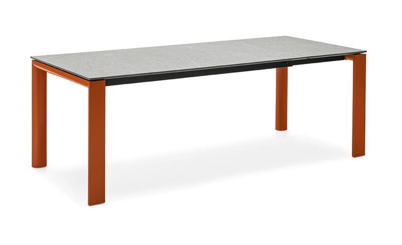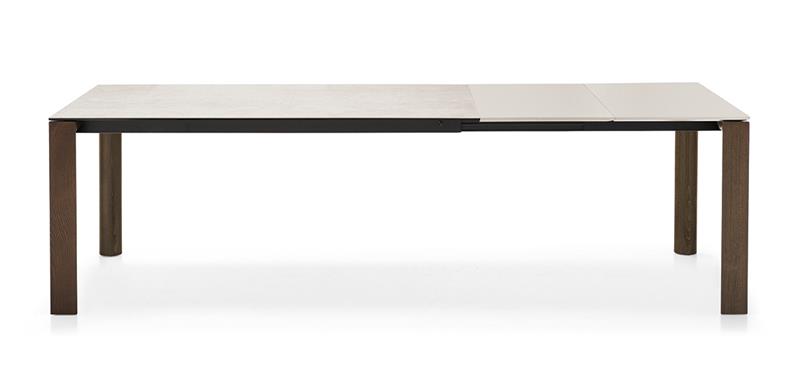 Stol Dorian razvlači se po dužini te noge prate izvlačni dio stola. Dolazi u velikom broju obrada sa keramičkom gornjom pločom, te gornjom pločom i u melaminu. Noge i okvir mogu biti u kombinaciji metala i drva, kao i kompletno metalne. Kada je razvučen, stol je pogodan za 8 osoba. Izvlačni dio uvijek dolazi u melaminu. Mogućnost narudžbe ravnih i zaobljenih nogu stola.
