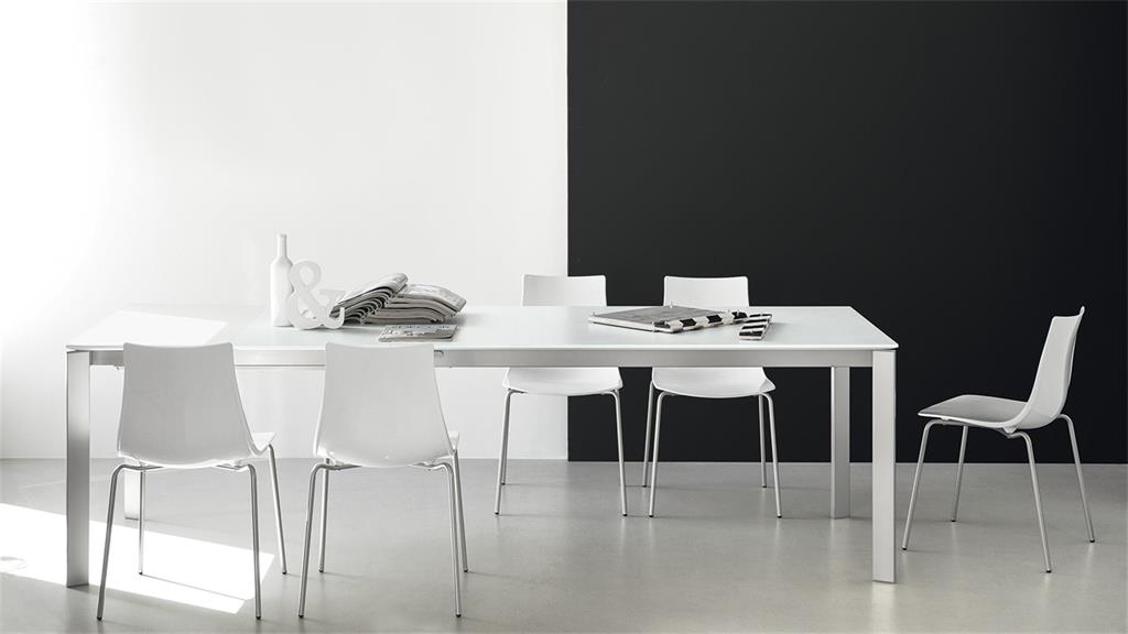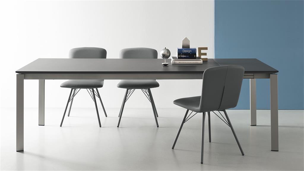 Stol na razvlačenje Eminence s metalnom bazom i gornjom pločom od melamina. Modularan stol koji se može prilagoditi bilo kojem prostoru i dizajnu. Dostupan je mnogo različitih dimenzija i obrada.