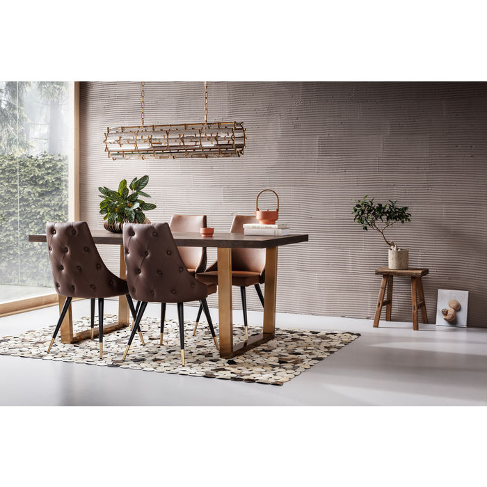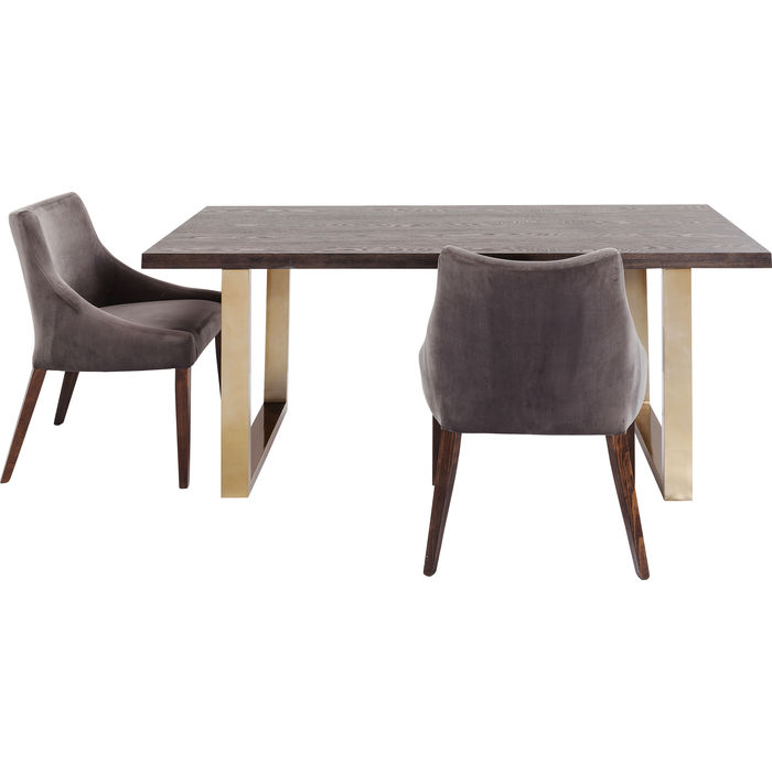 Stol izrađen od drva jasena na nogama boje mesinga. Kao stol za blagovanje nudi prostor za šest osoba, a kao radni stol pruža obilje kreativne slobode. Ovaj stol je elegantna mješavina materijala. Čak i bez stolnjaka postaje svečani stol - na primjer s mesinganim priborom za jelo i sivim porculanom.