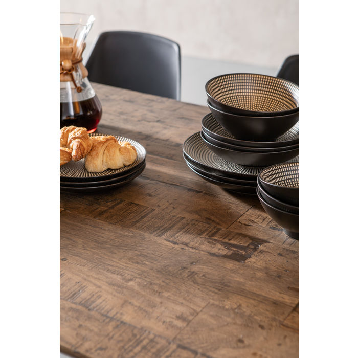 Ovaj blagovaonski stol poziva Vas na druženje. Izvrsna izrada: jedinstvena ploča od recikliranog drveta. Zrno drveta djeluje živo i domaće. Bezvremenski dizajn uklapa se u mnoge stilove opremanja. Stol ima metalne noge u industrijskom stilu.