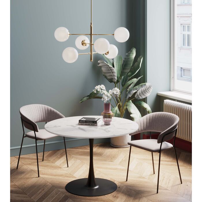 Kao i kod svih modela iz KARE serije stolova Schickeria, okrugli stol sa središnjom nogom nudi dovoljno prostora za noge vaših gostiju. Iznad svega, njegov zadivljujući dizajn već je moderni klasik. Dizajn okruglih stolova s bazom od tulipana elegantan je i bezvremenski izbor za svaki interijer. Njegov stil nastao je u 20. stoljeću kada su, posebno u izradi namještaja, zastarjeli oblici zamijenjeni svježim, mladim dizajnom. Zahvaljujući promjeru od 110 cm, za stolom se mogu udobno smjestiti do četiri osobe.