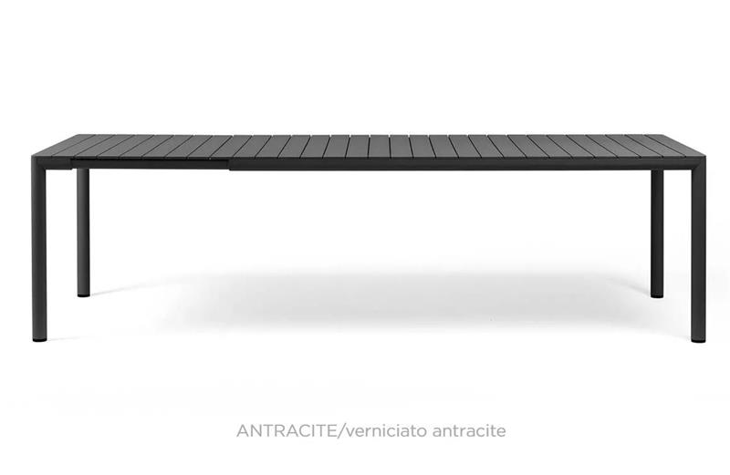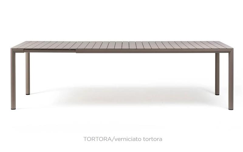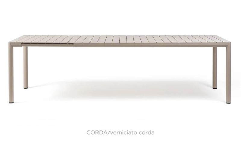 Dizajn ekološki prihvatljivog vanjskog stola na razvlačenje Tevere odlikuje se finim linijama, usmjerenim prema rubovima koji nisu oštrih te lagano zaobljenog oblika nogu. Dostupan je u dvije veličine.