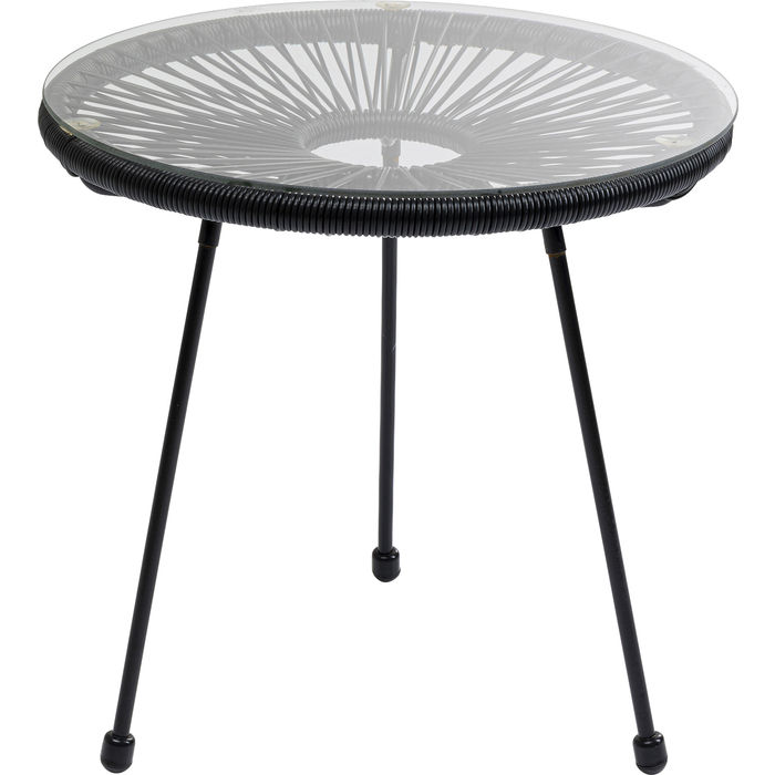 Crni, okrugli stolić sa staklenom pločom dizajniran za unutarnje i vanjske prostore. Legendarni dizajn iz 1950-ih na tri noge. U unutarnjim prostorima odlično se uklapa pored sofe, a ukoliko se odlučite koristiti ga kao vrtni stolić upotpuniti će izgled vašeg balkona ili vrta. Kombinirajte ga s Acapulco foteljama iz iste kolekcije.