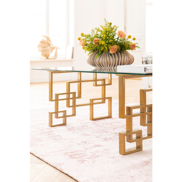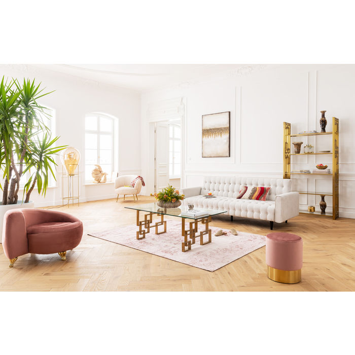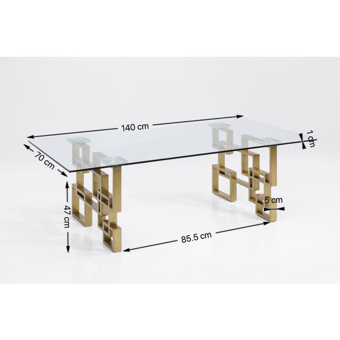 Ovaj stolić je izuzetno dekorativan komad namještaja koji bi sjajno izgledao na crno-bijelom tepihu. Uz njega se vrlo dobro slaže baršunasti tapecirani namještaj. Nije razmetljiv te stol izgleda lagano i elegantno usprkos zlatnom svjetlucanju.