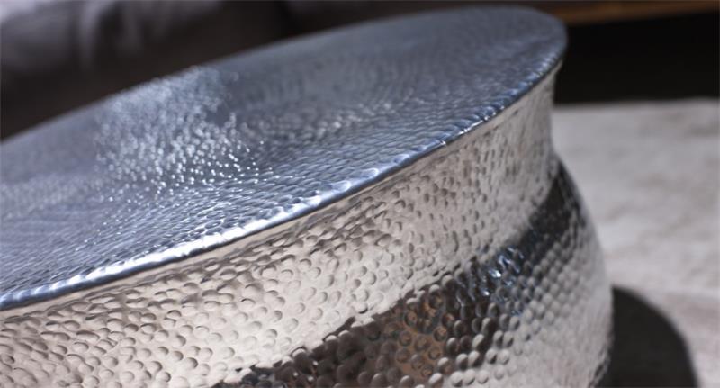 Ručno izrađeni stolić od poliranog aluminija. Ima hrapavu udubljenu površinu. Svaki stolić je jedinstven pa se može malo razlikovati od prikazanog na slici.