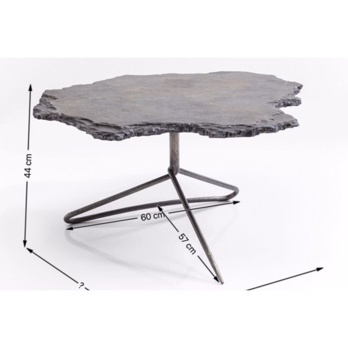 Prirodan i autentičan stolić. Ovaj upečatljivi stolić za kavu utječe svojim smanjenim oblicima i originalnim detaljima. Ploča stola od crnog vapnenca posebno je atraktivna.