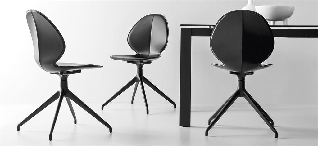 Sjedište stolice Basil je izrađeno od polipropilena ili presvučeno regeneriranom kožom dok su baza i noge od aluminija. Korištenje raznih materijala, poput aluminija pri izradi baze i nogu te 100% recikliranog polipropilena, je omogućilo Calligarisu da izradi izdržljivu, laganu i ergonomsku dizajnersku stolicu. Izgled stolice, u obliku lista bosiljka, u isto vrijeme postaje strukturalan, kao i dekorativan motiv ove stolice. Stolica Basil CS/1856 ima zakretni mehanizam koji joj dopušta okretanje za 360 stupnjeva oko svoje osi što je čini idealnom čak i za uredske prostore. Udobna i funkcionalna, dostupna je u mnogo različitih boja i obrada, izaberite kombinaciju koja vam najviše odgovara!