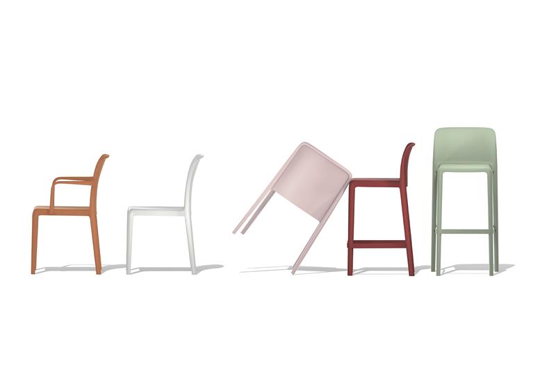 Stolica Bayo od polipropilena izrađena tehnologijom Air Molding, istovremeno manifestira lakoću i čvrstoću. Negova pojačana struktura i zaobljeni rubovi stvaraju atraktivan kontrast i dovode u prvi plan ljepotu naslona koji se lagano sužava.