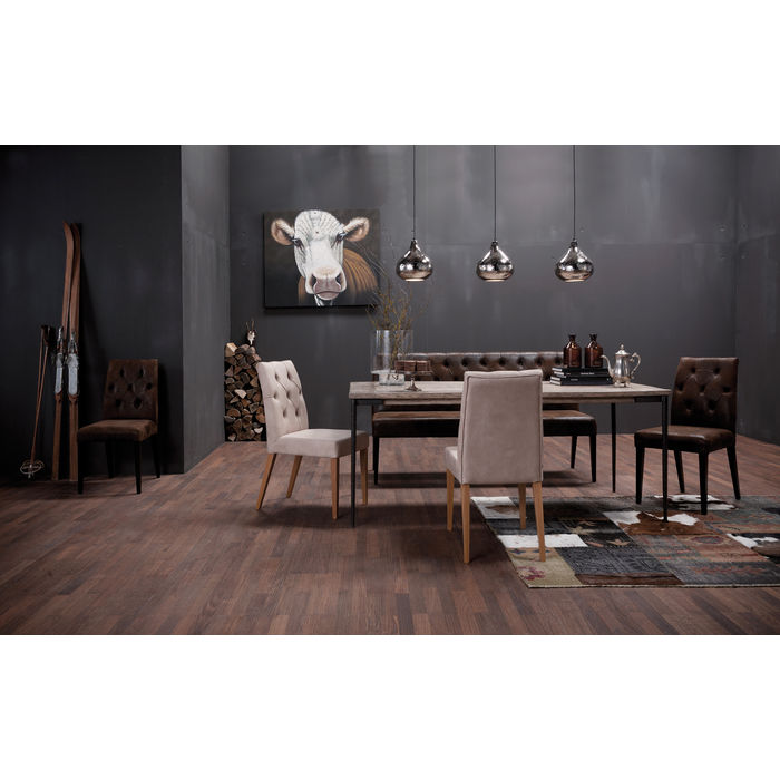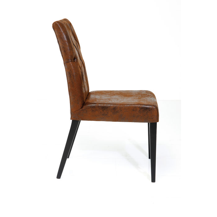 Elegantna tapecirana stolica u vintage stilu. Navlaka Chesterfield na naslonu daje joj dašak ekskluzivnosti, dok noge izrađene od obojene bukve uspješno zaokružuju dizajn. Presvlake na naslonu i sjedećem dijelu pružaju vrhunsku udobnost sjedenja.