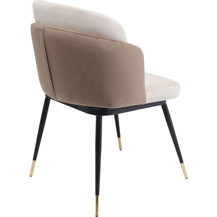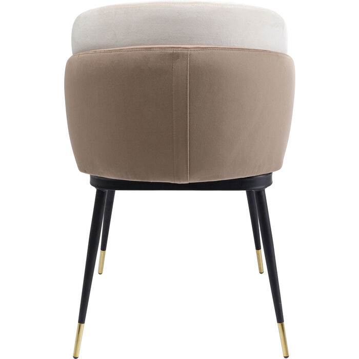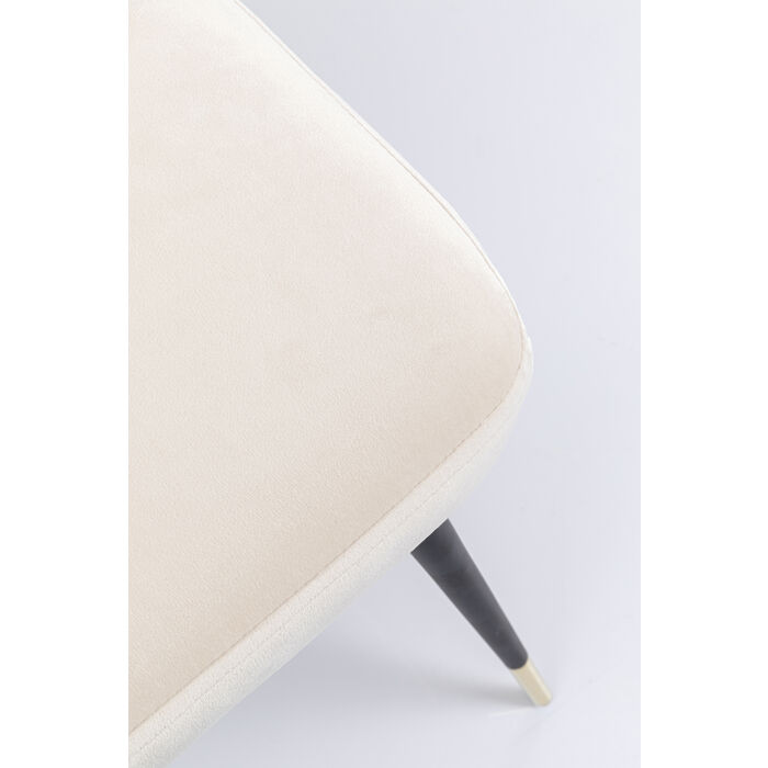 Ova moderna bež baršunasta stolica obećava ugodno sjedenje, čak i ako večera potraje malo dulje. Ekskluzivan dizajn ove stolice čini ju vizualnim središtem dnevnog boravka i blagavaonice. Naslon u obliku školjke elegantan je i udoban za vaša leđa. Ova stolica unosi retro stil u moderan tip sobe i može se stilski kombinirati sa raznim stolovima.