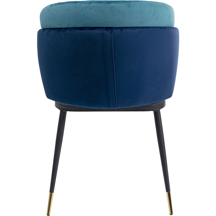 Ova moderna plava baršunasta stolica obećava ugodno sjedenje, čak i ako večera potraje malo dulje. Ekskluzivan dizajn ove stolice čini ju vizualnim središtem dnevnog boravka i blagavaonice. Naslon u obliku školjke elegantan je i udoban za vaša leđa. Ova stolica unosi retro stil u moderan tip sobe i može se stilski kombinirati sa raznim stolovima.