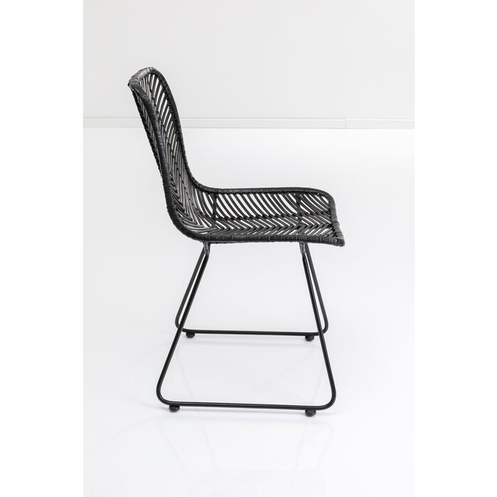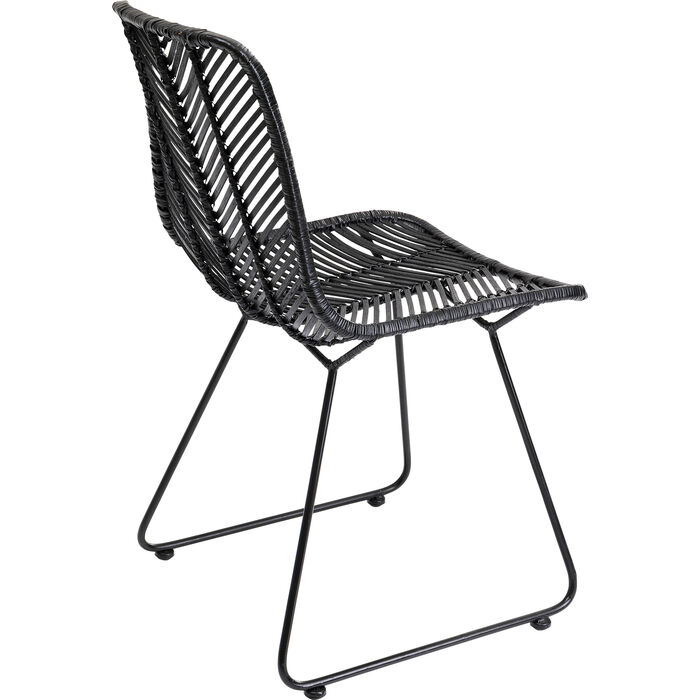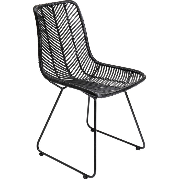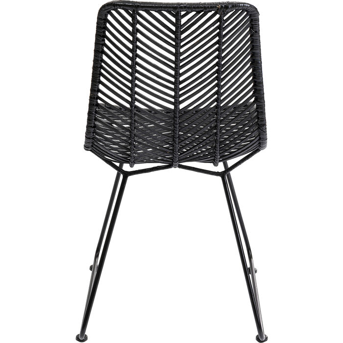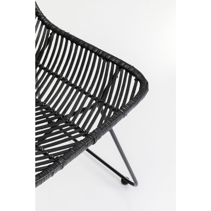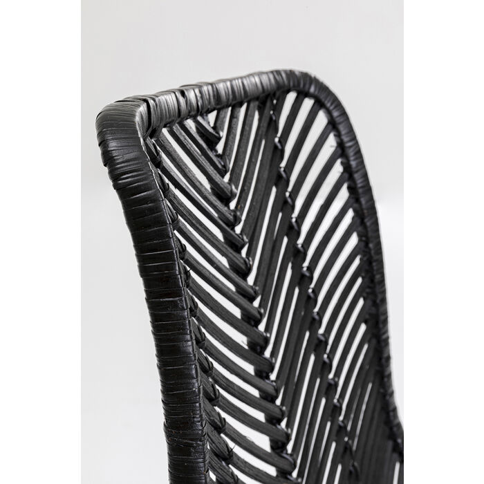 Djelomično ručno izrađena stolica od rattana unosi prirodni stil u vaš dom ili vrt. Bilo na balkonu, terasi ili blagovaonici ova lagana stolica sa svojim filigranskim oblikom stane bilo gdje. Dok su noge izrađene od čvrstog, crno lakiranog čelika, rattan je pleten ručno.