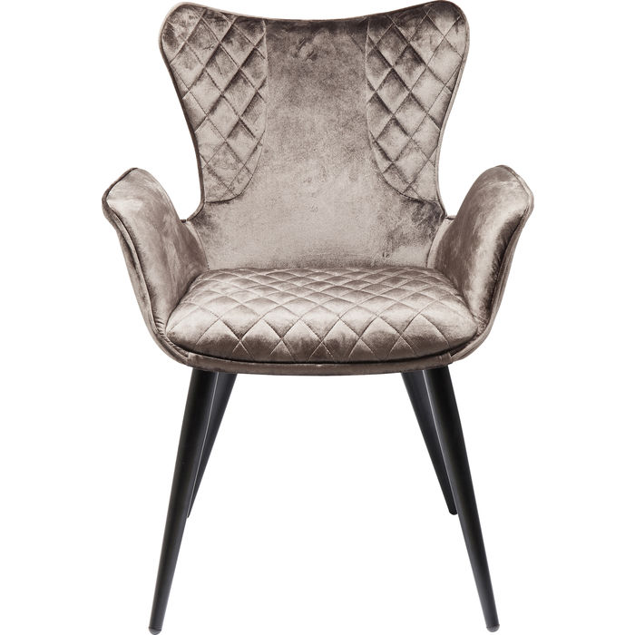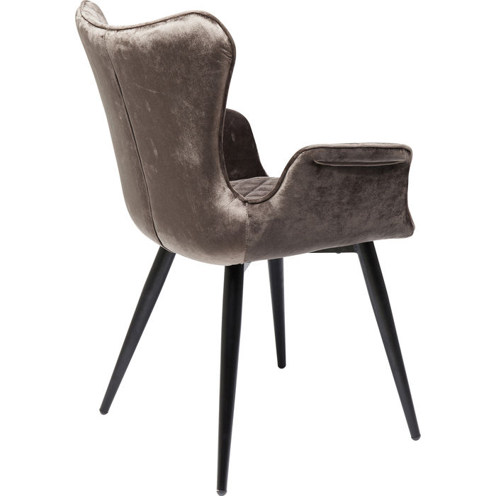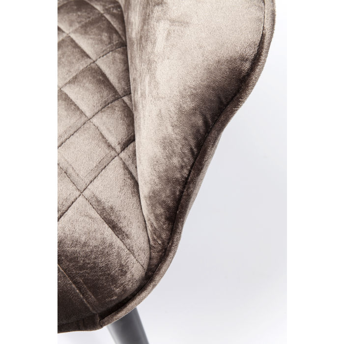 Baršunasta, udobna stolica koja svojim izgledom podsjeća na fotelju.Zbog tapeciranog sjedišta i širokog naslona odlična je za duža sjedenja. Ova stolica izgleda dobro ne samo za stolom za blagovanje, već i kao samostalni komad. Svjetlucava baršunasta presvlaka odiše dodatnom elegancijom. Jednostavna je za kombiniranje te će se stoga uklopiti u gotovo svaki ambijent.