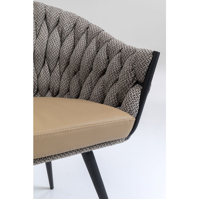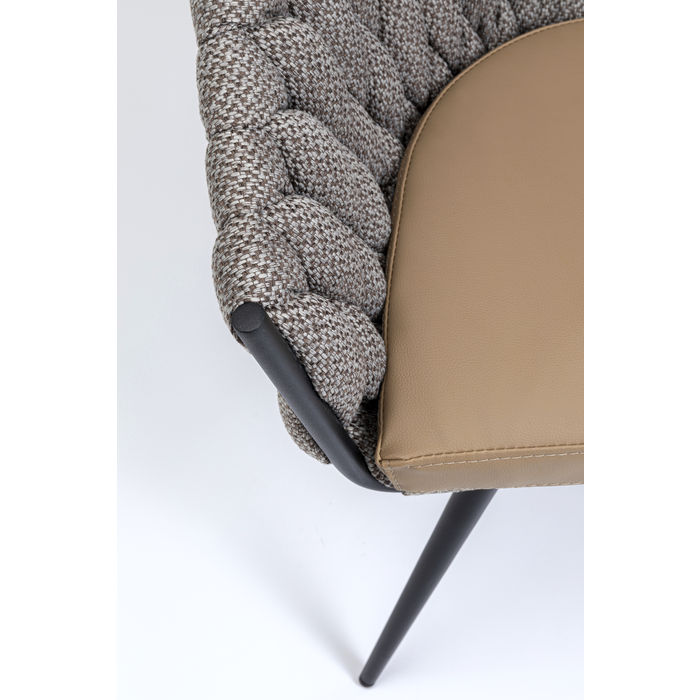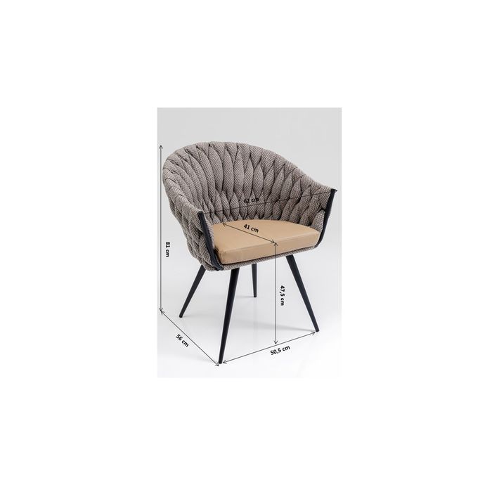 Ova stolica zavest će vas svojim trendovskim retro stilom pojačanim minimalističkom metalnom bazom. Njezin zakrivljeni naslon i rukonasloni poboljšani su trakama od tkanine. Šik i elegantna, ova stolica pronalazi svoje mjesto u profinjenom interijeru. Možete ju kombinirati s istim stolicama u drugim bojama.