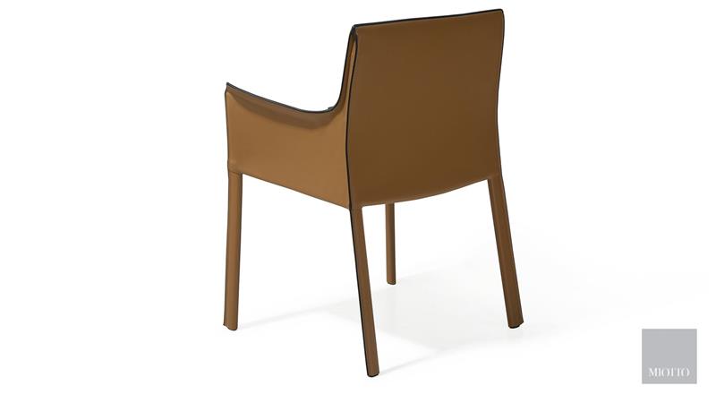 Stolica za blagovanje u potpunosti je tapecirana eko kožom s crnim rubovima, visokokvalitetnom obradom i jedinstvenim dizajnom koji se izvrsno kombinira sa širokim rasponom blagovaonica. Stolica ima kromirani metalni okvir. Linije sjedala i naslona stvaraju udoban izgled.